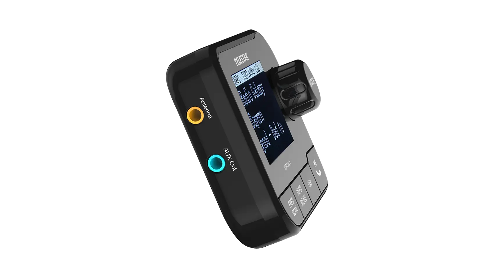Die Audioübertragung an das bestehende Audiosystem erfolgt flexibel über FM-Transmitter oder Line-out, sodass der Adapter mit nahezu jedem Autoradio kompatibel ist. Zusätzlich ermöglicht Bluetooth kabelloses Musikstreaming vom Smartphone sowie freihändiges Telefonieren. Bei eingehenden Anrufen schaltet der Adapter automatisch in den Freisprechmodus.