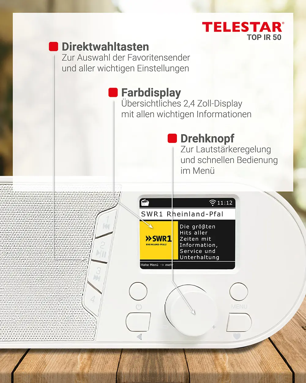 TOP IR 50 Weiß – WLAN-Internetradio mit Bluetooth